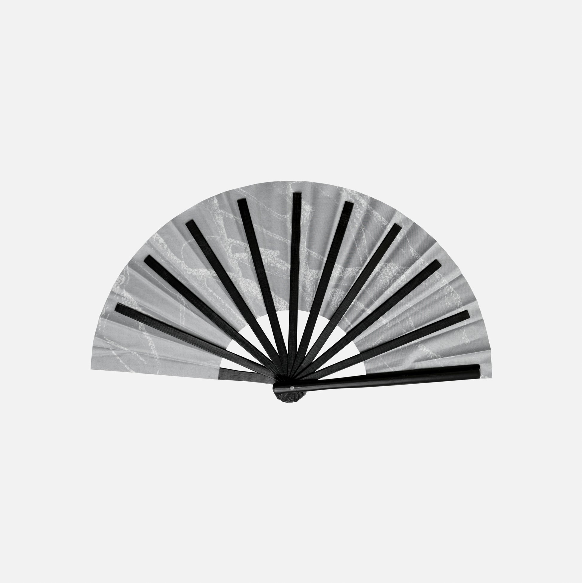 This original PRETTY RANDOM design is printed on high-quality satin fabric mounted on black bamboo ribs. Does it clack? Oh yes, it does.